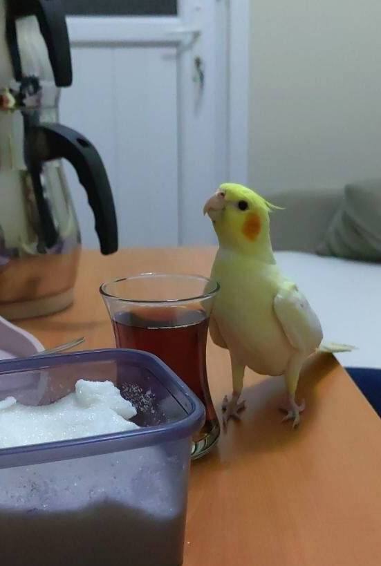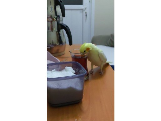 Çay bardağına kadar sokulan bu cana yakın yakışıklı, evde yalnız kaldığı için yeni yuvasını bekliyor.