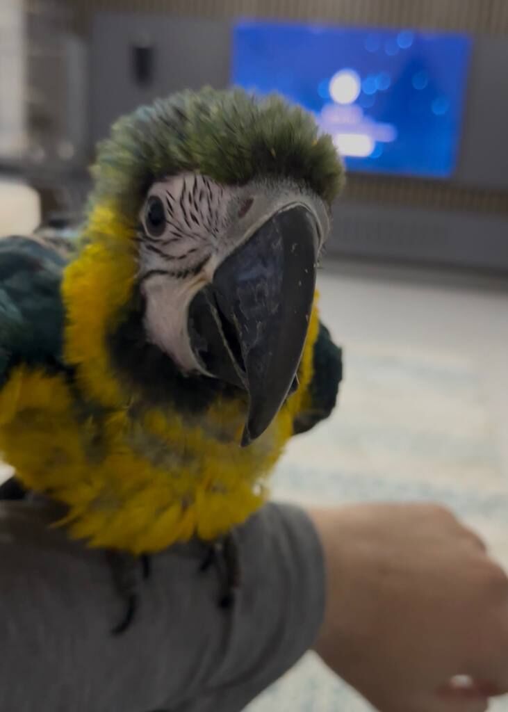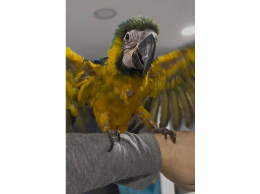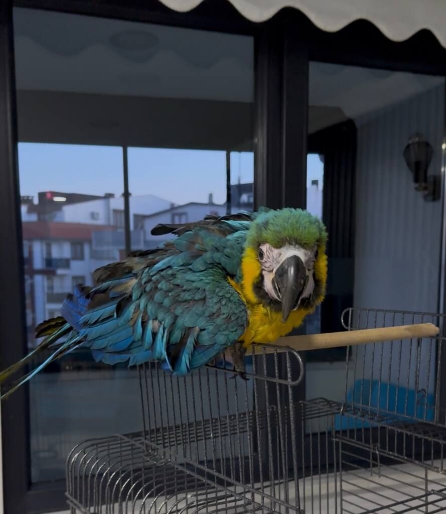 5 aylık Macaw papağanım. 2 adet kafesi var ve yemleriyle beraber verilecektir.