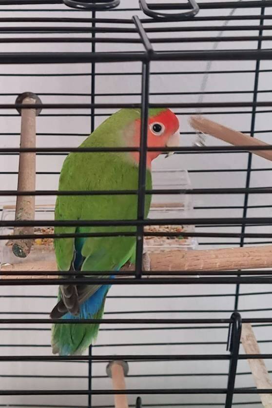 Erkek Sevda Papağanı, dişi kuşum icin aldim ama ciftlesmediler , erkek kus uysal isirma yok , kafesiyle sahiplendirecegim.