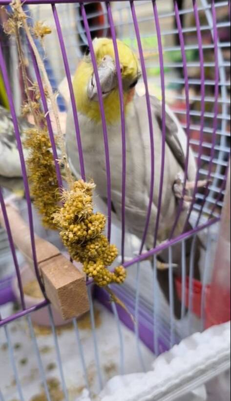 4 aylık Sultan Papağanlarımız, erkek olan ıslık çalabiliyor.