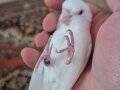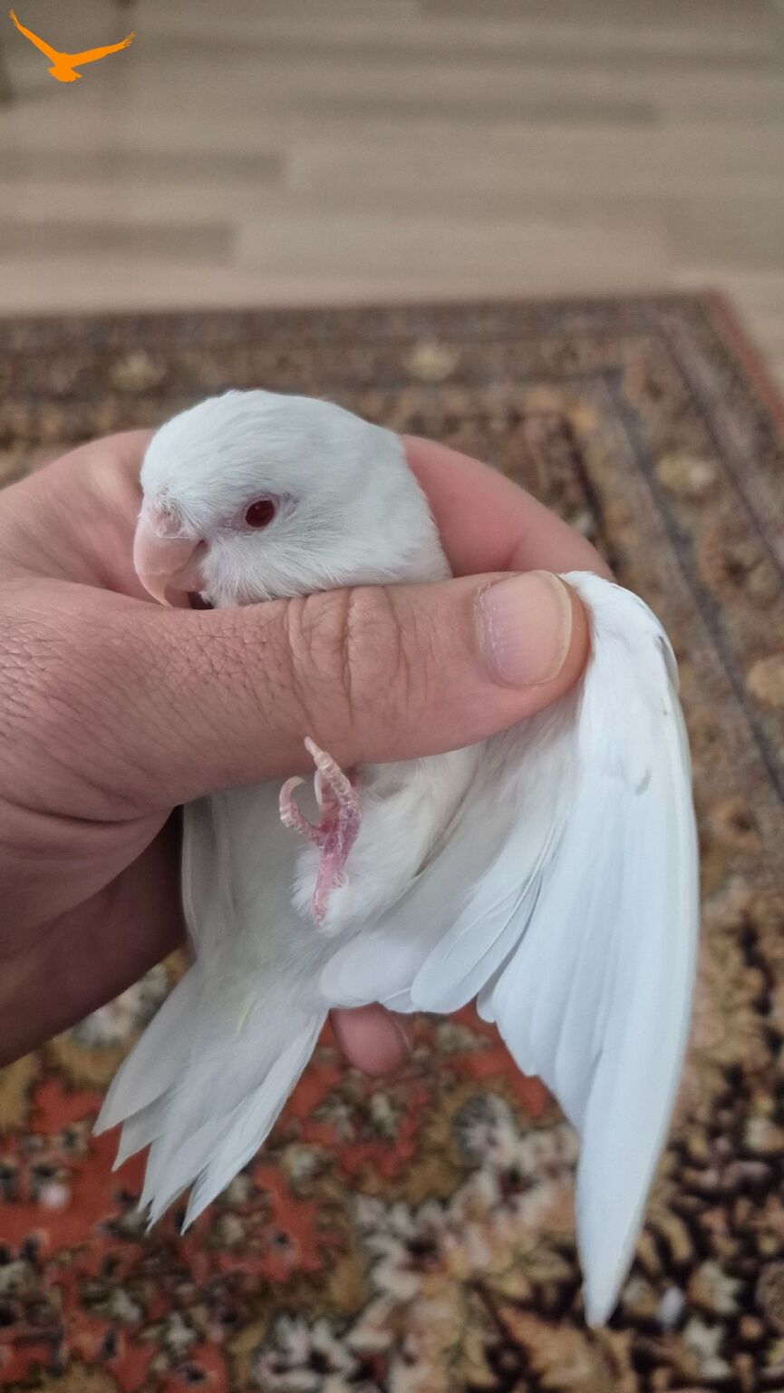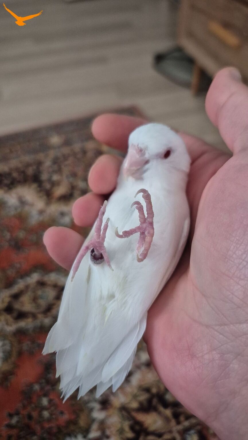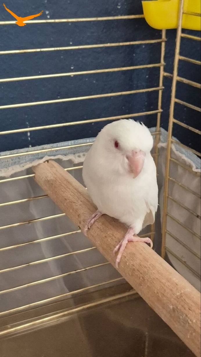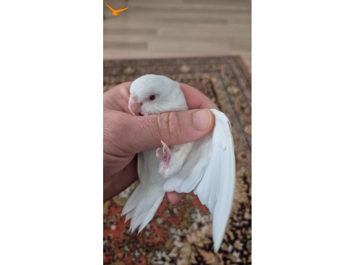 Forpus Albino kırmızı göz, beyaz renk, erkek. 4-5 yaşlarında. Bilezikli ve sağlıklıdır. Ele alışkın değil. Çiftleştirmek için tercih edilebilir. Çok sakindir, sesi çıkmaz, ısırmaz. Daha önce yavruları oldu.