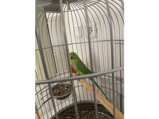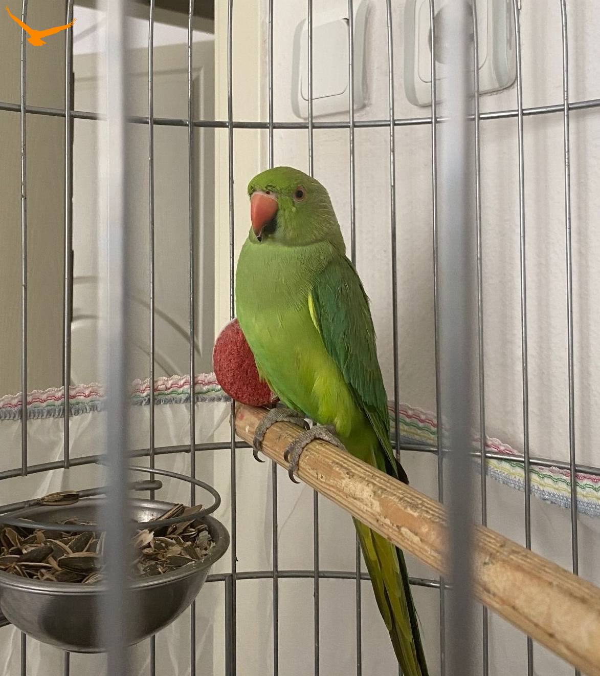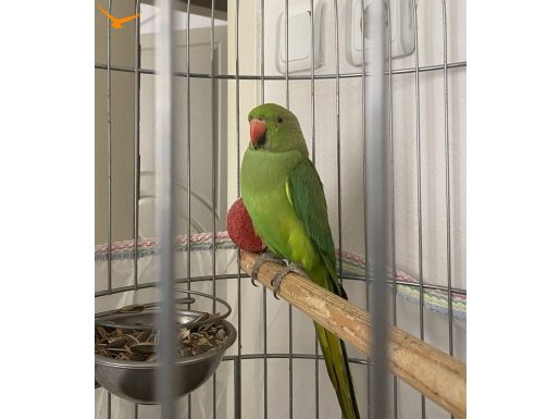 Zümrüt yeşili parlak tüyleri ve vakur duruşuyla evinizin enerjisini değiştirecek, bakışlarıyla iletişim kuran karakterli bir Pakistan papağanı.