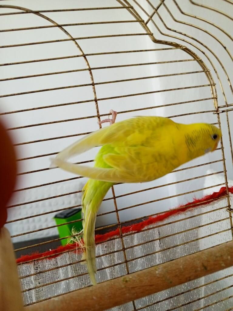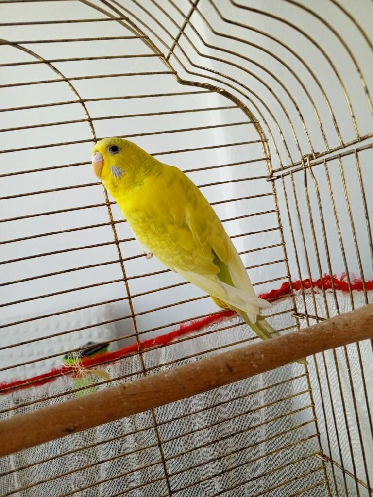 Sekiz aylık dişi sarı, bir yaş mavi jumbo erkek. Kısa bir süre önce eş aldılar.