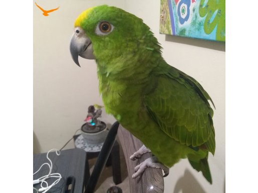 Amazon türünün zekasını üzerinde taşıyan bu fıstık yeşili yakışıklı, yeni yuvasına alışmaya hazır bekliyor.
