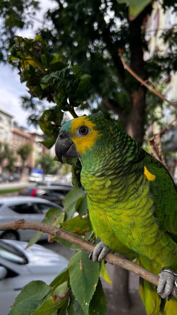 Evimizin neşesi, mavi alımlı Amazon papağanımızı (blue-fronted Amazon) özel sebeplerden dolayı yeni yuvasına uğurluyoruz.
